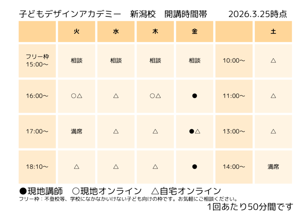 開講している時間帯や方式(オンラインor現地)により対応する講師が異なります。詳しくはお問い合わせください。